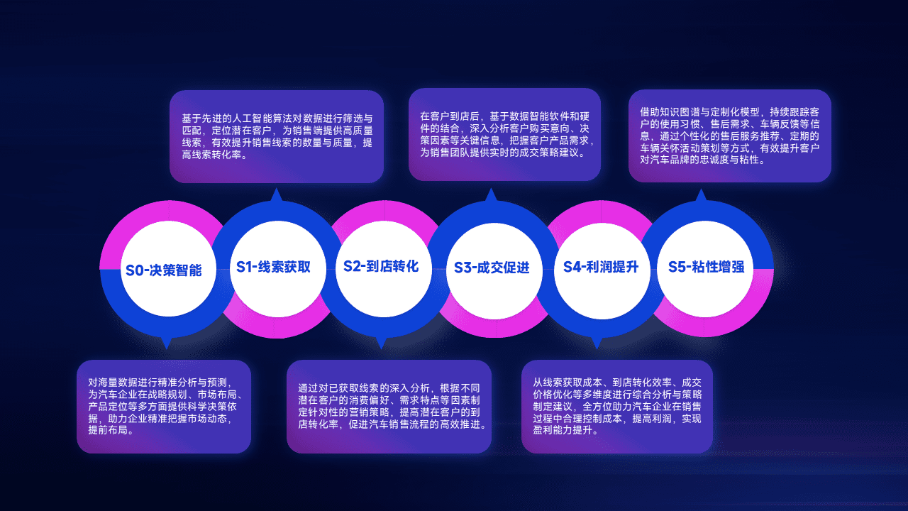 通过拓宽潜在客户来源、、、优化线索分配并提高到店转化率,,,,以增强销售效率。。。。同时,,,,利用线索数据不断优化分析模型,,,有效提升转化率,,扩大营销影响力。。。